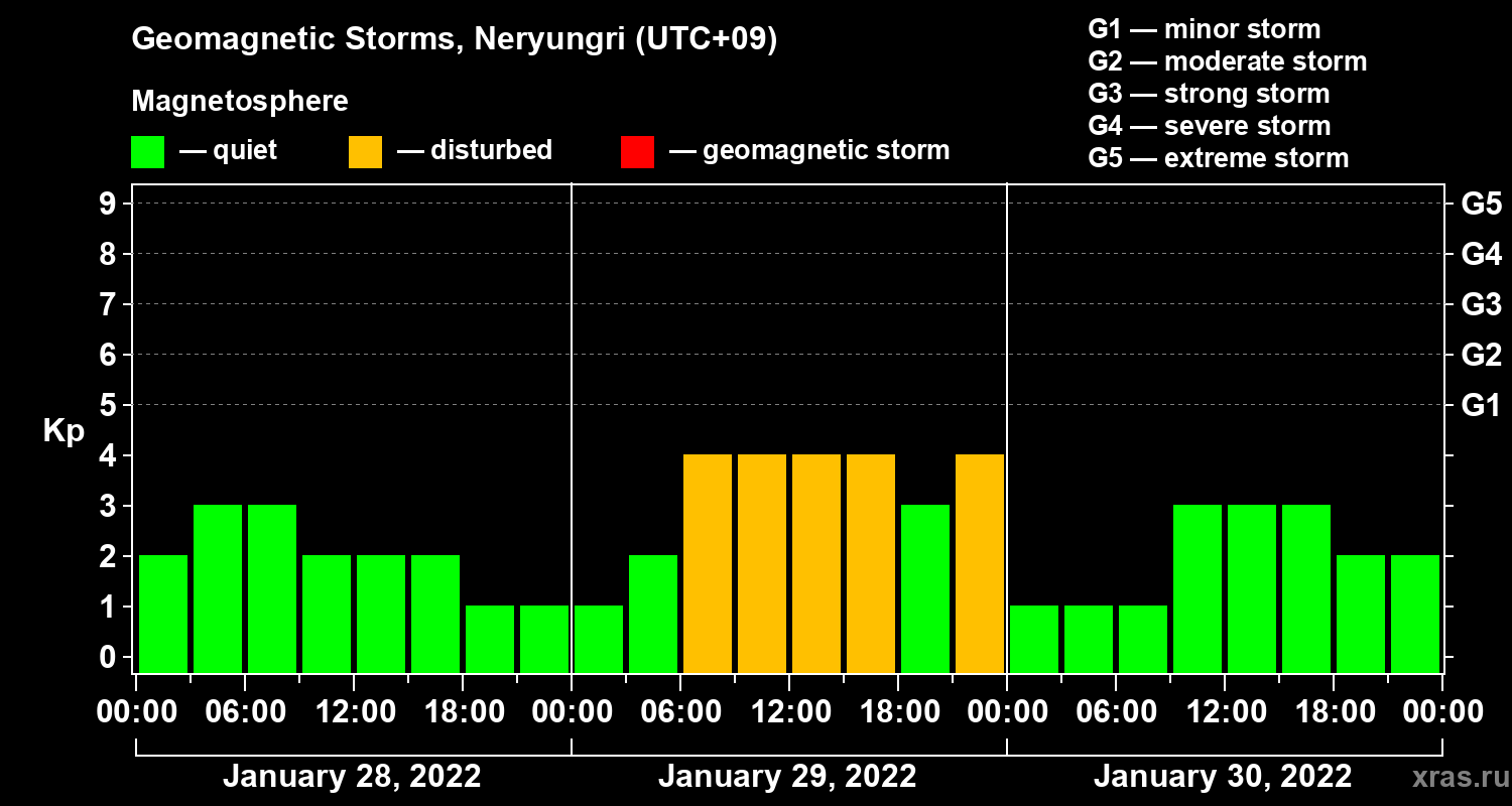 Geomagnetic storms in Neryungri — Jan 30, 2022