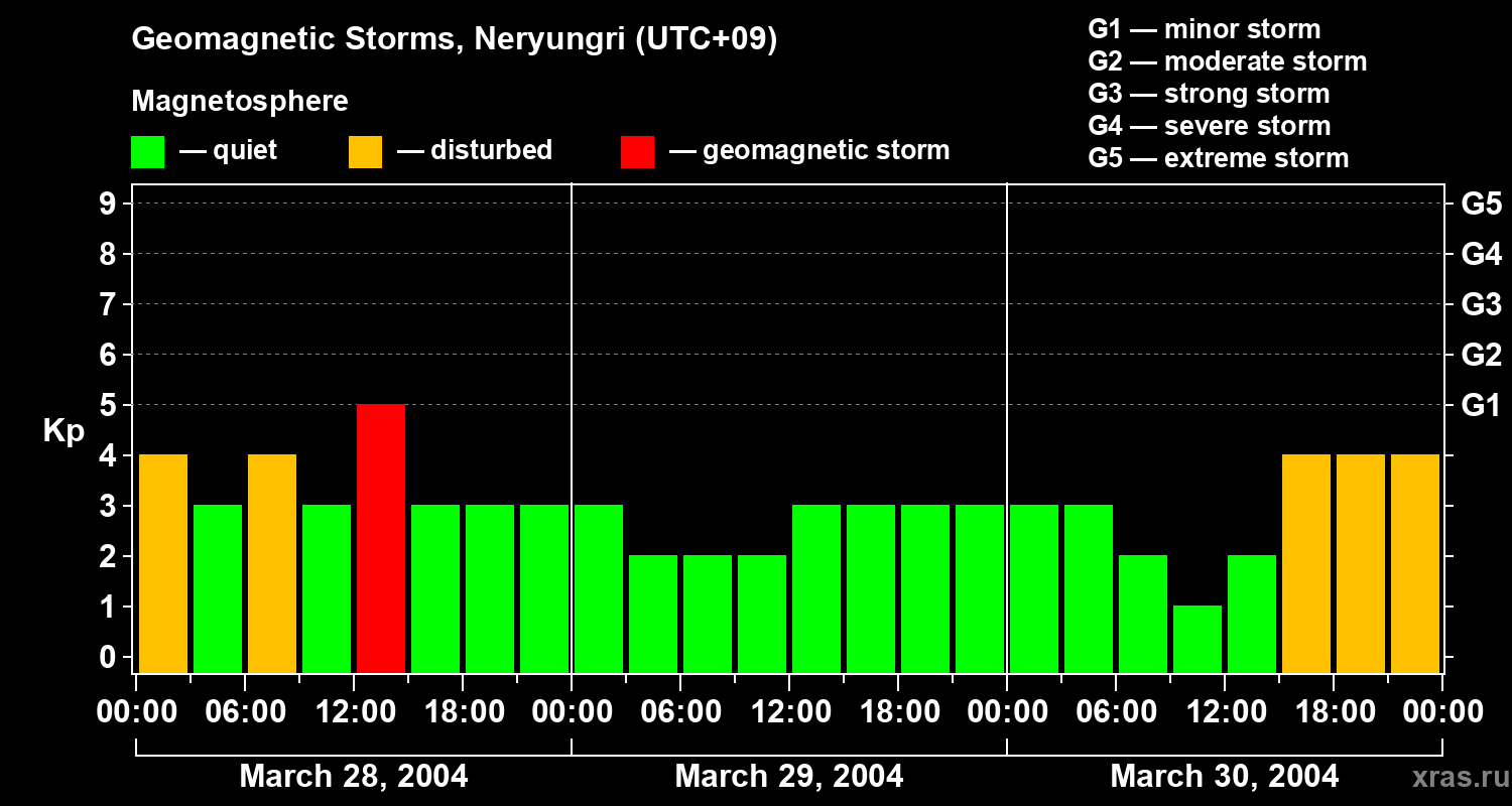 Geomagnetic storms in Neryungri — Mar 30, 2004