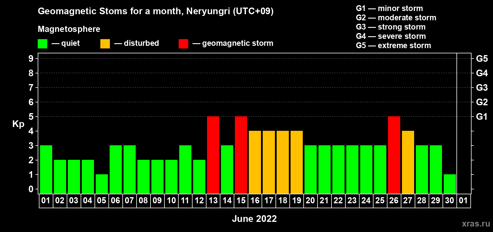 Geomagnetic storms in Neryungri in June 2022