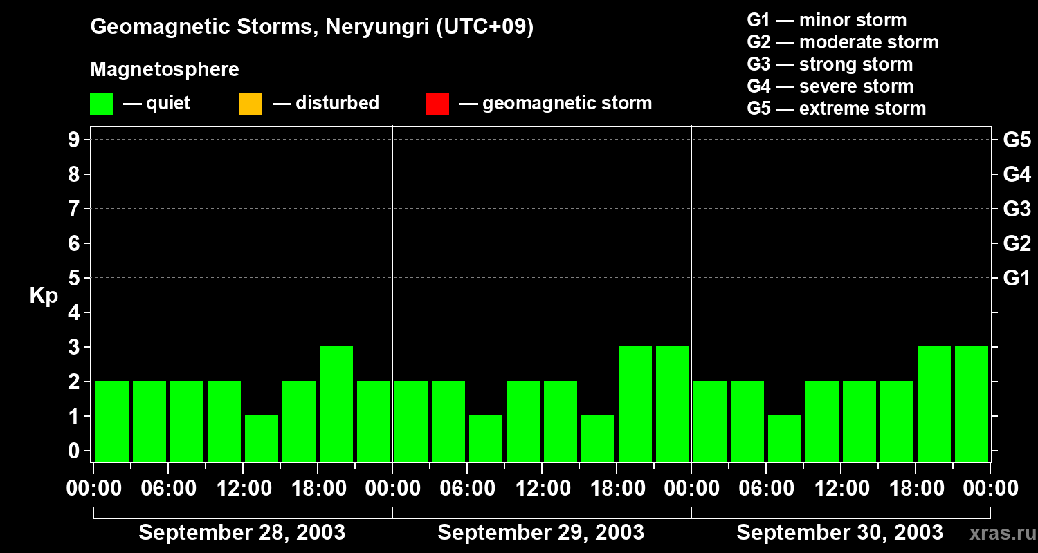 Geomagnetic storms in Neryungri — Sep 30, 2003