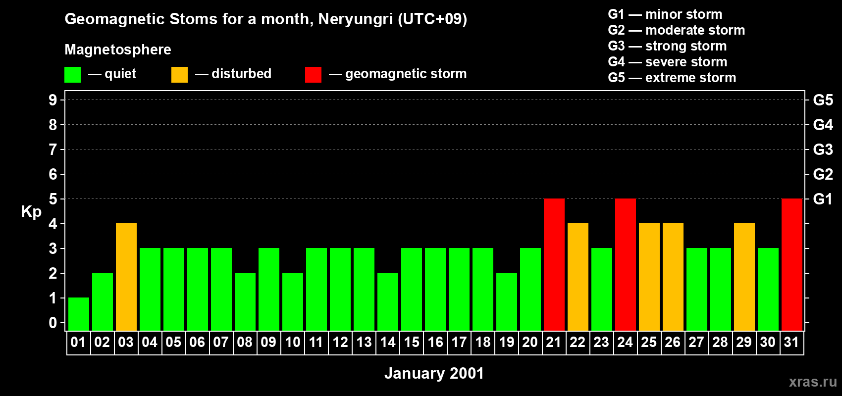 Geomagnetic storms in Neryungri — Jan 31, 2001