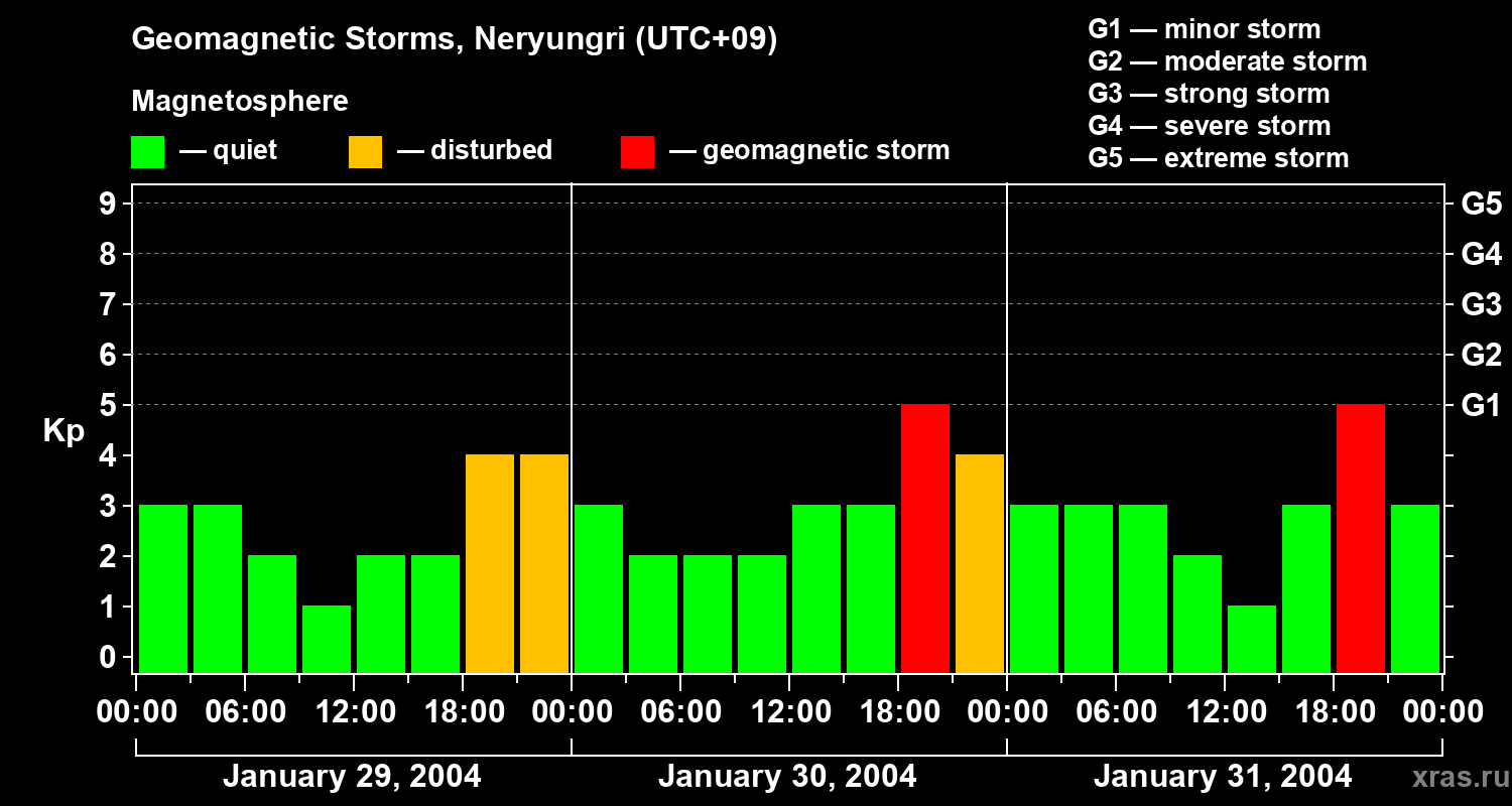 Geomagnetic storms in Neryungri — Jan 31, 2004
