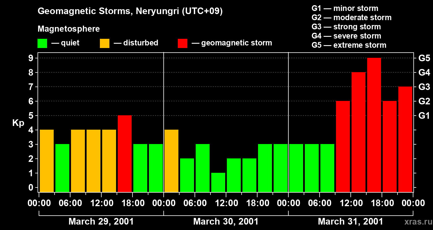 Geomagnetic storms in Neryungri on Mar 31, 2001
