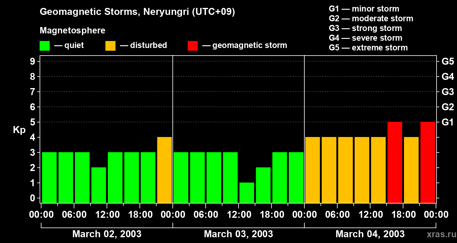 Geomagnetic storms in Neryungri — Mar 04, 2003