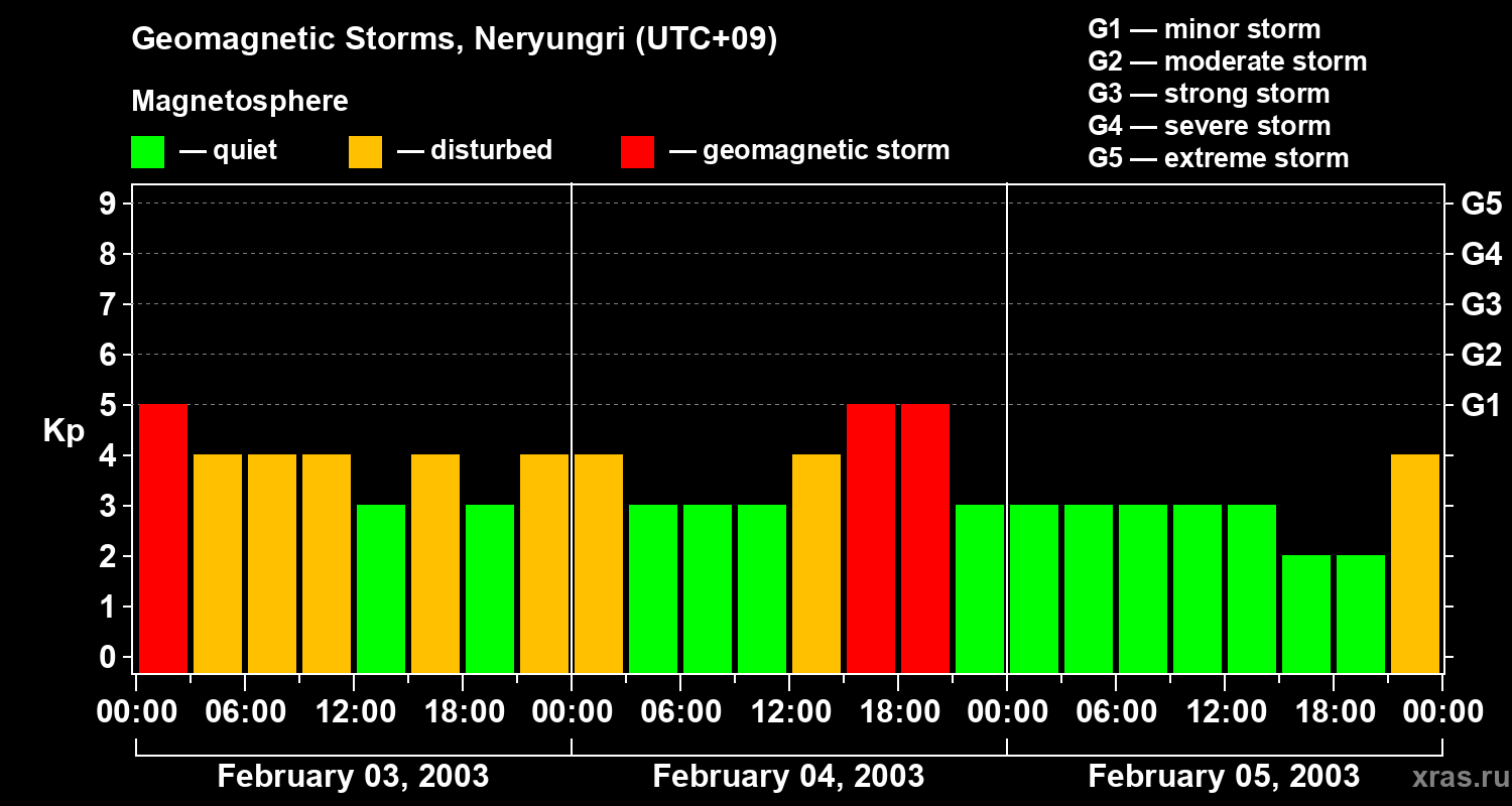 Geomagnetic storms in Neryungri — Feb 05, 2003