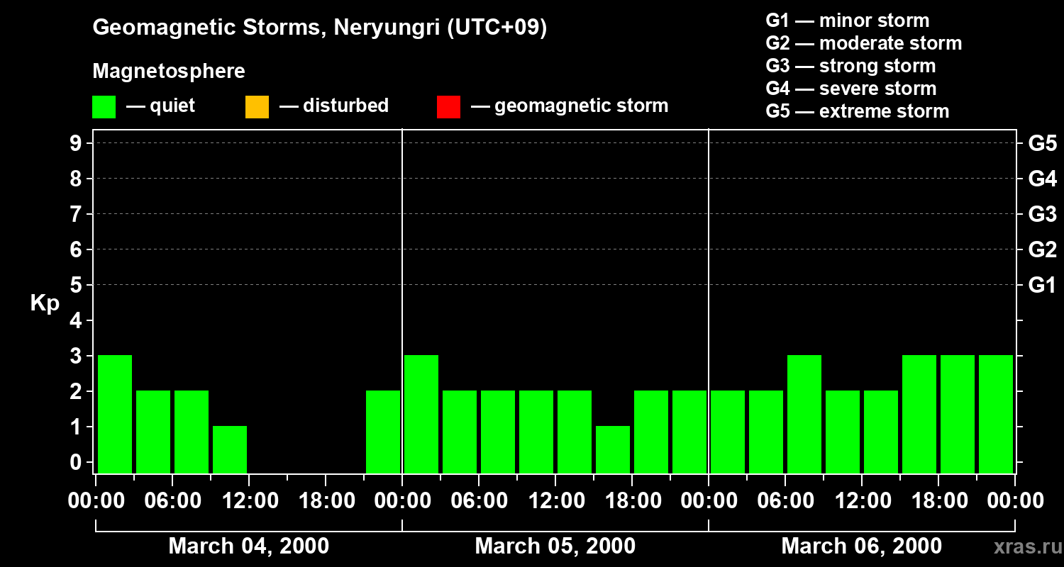 Geomagnetic storms in Neryungri in March 2000