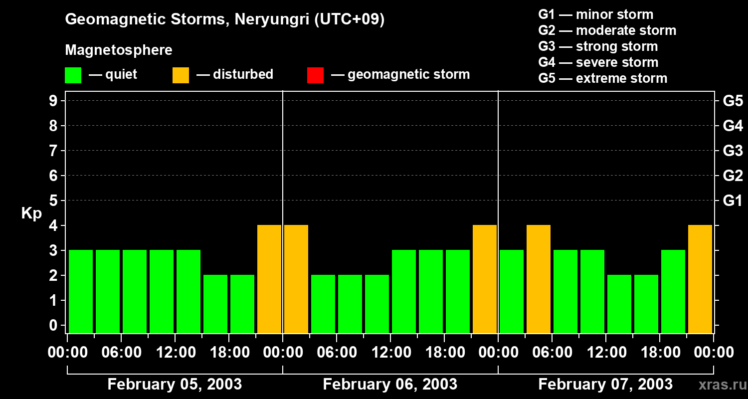 Geomagnetic storms in Neryungri — Feb 07, 2003