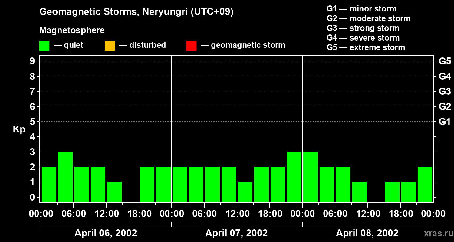 Geomagnetic storms in Neryungri — Apr 08, 2002