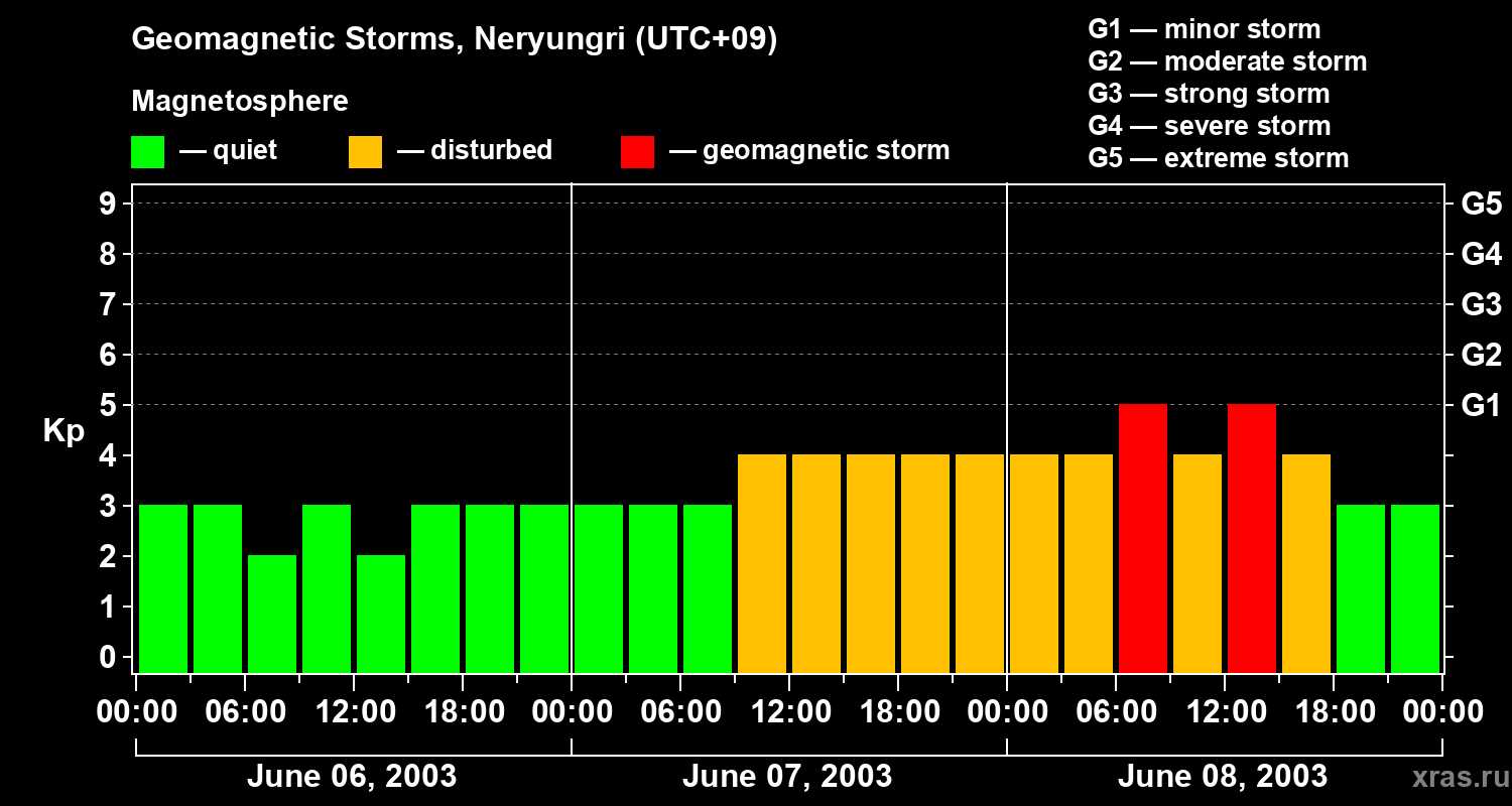 Geomagnetic storms in Neryungri on Jun 08, 2003