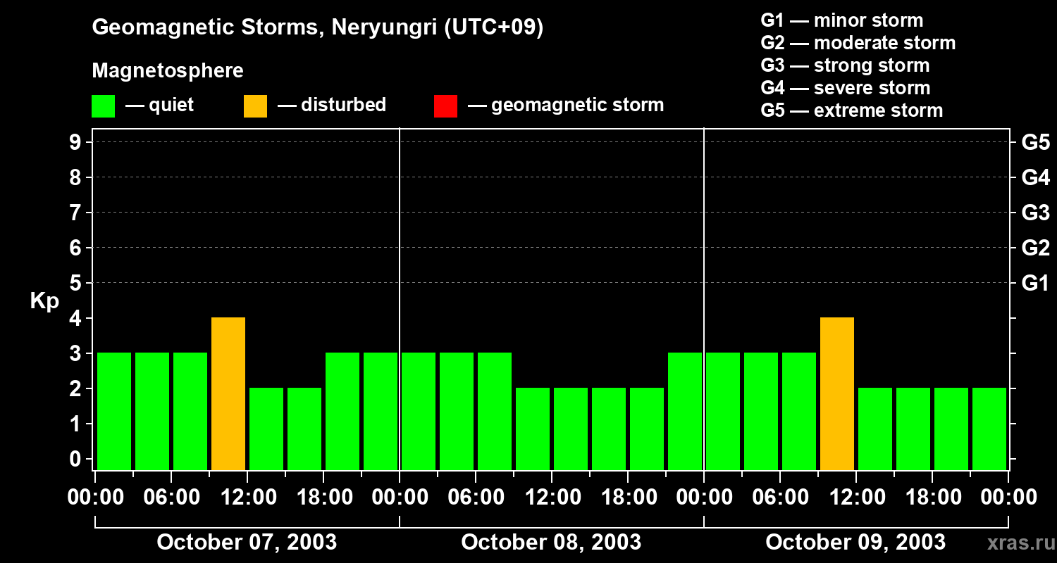 Geomagnetic storms in Neryungri on Oct 09, 2003