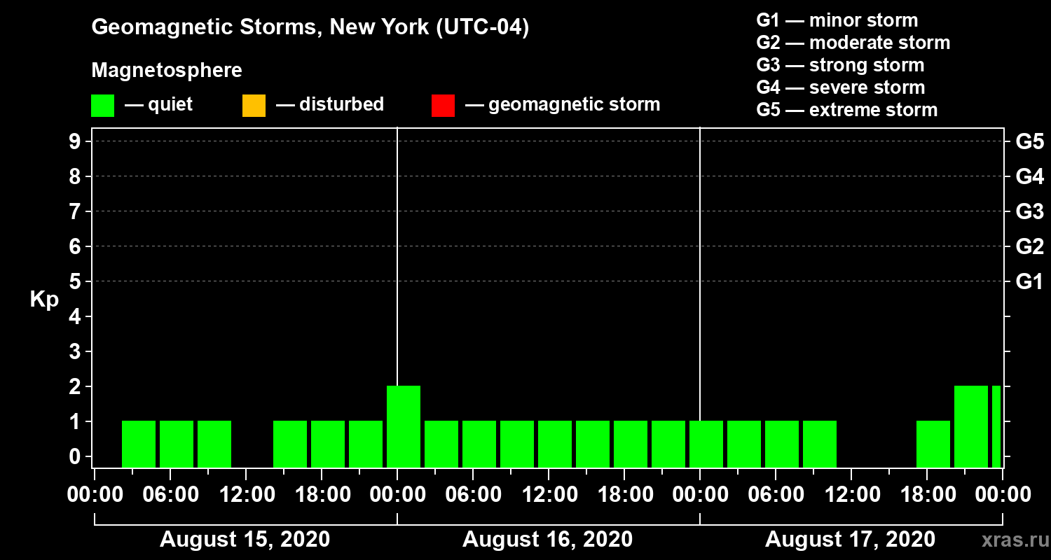 Changes in the geomagnetic index Kp from August 15 to 17, 2020 for mid latitudes