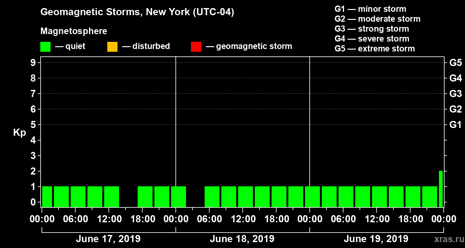 Changes in the geomagnetic index Kp from June 17 to 19, 2019 for mid latitudes