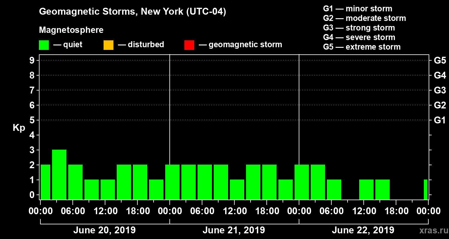 Geomagnetic storms in New York on Jun 22, 2019
