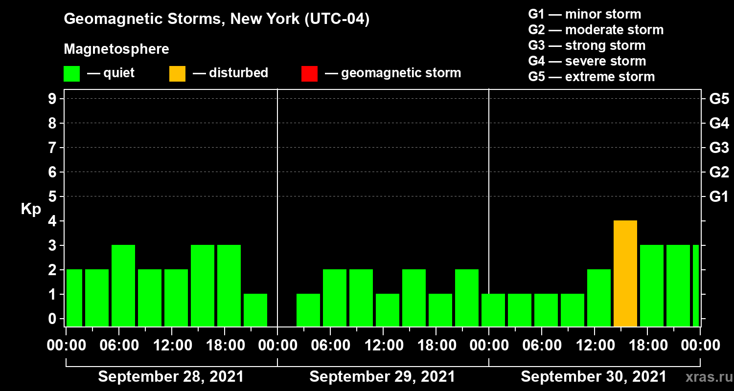 Changes in the geomagnetic index Kp from September 28 to 30, 2021 for mid latitudes