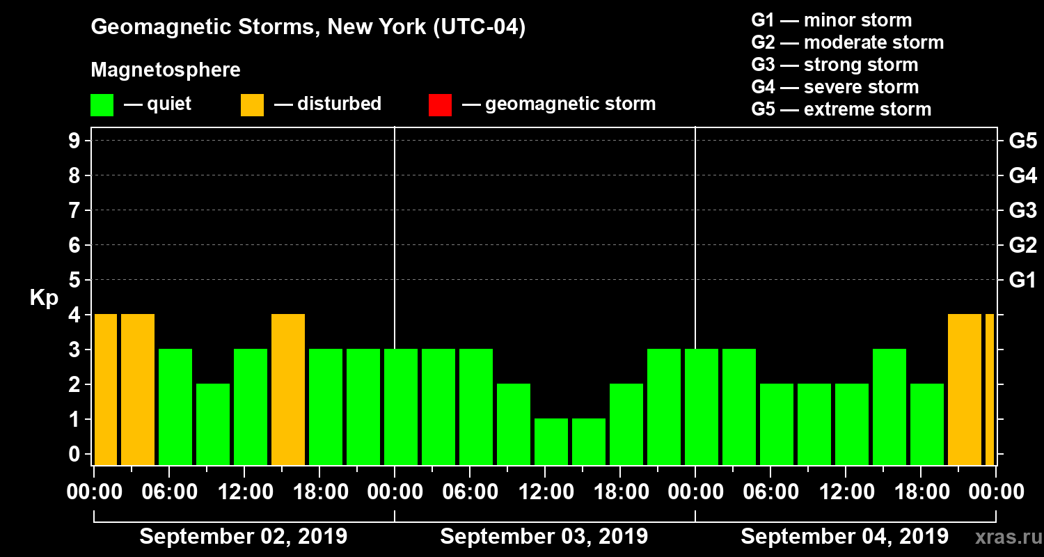 Geomagnetic storms in New York on Sep 04, 2019