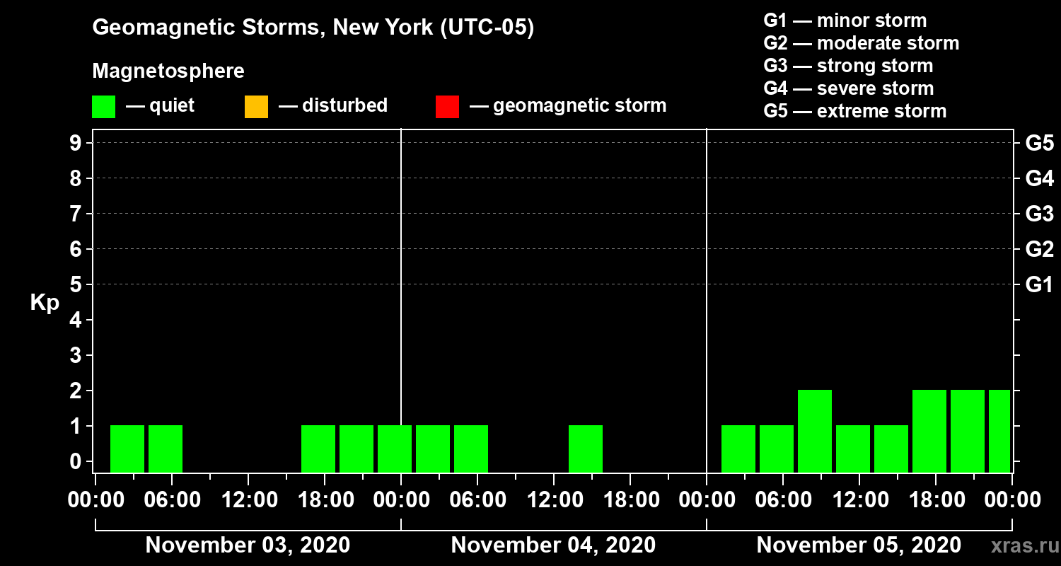 Geomagnetic storms in New York on Nov 05, 2020