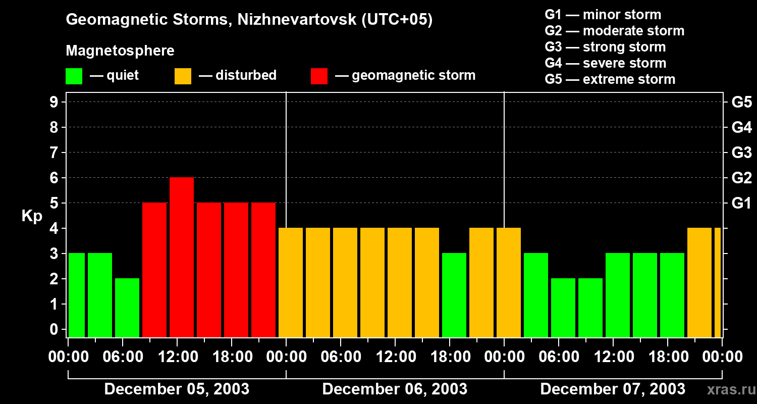 Geomagnetic storms in Nizhnevartovsk in December 2003