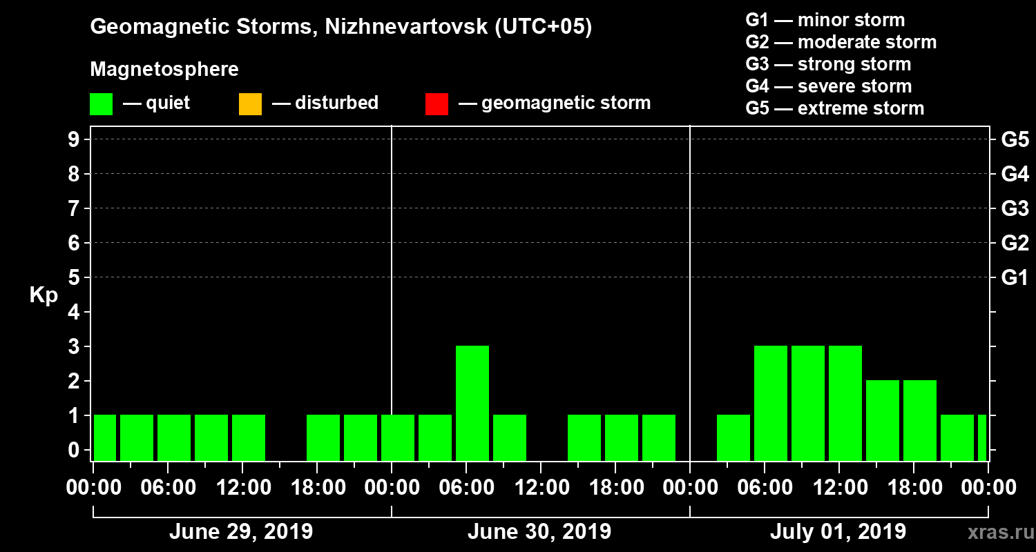Geomagnetic storms in Nizhnevartovsk on Jul 01, 2019
