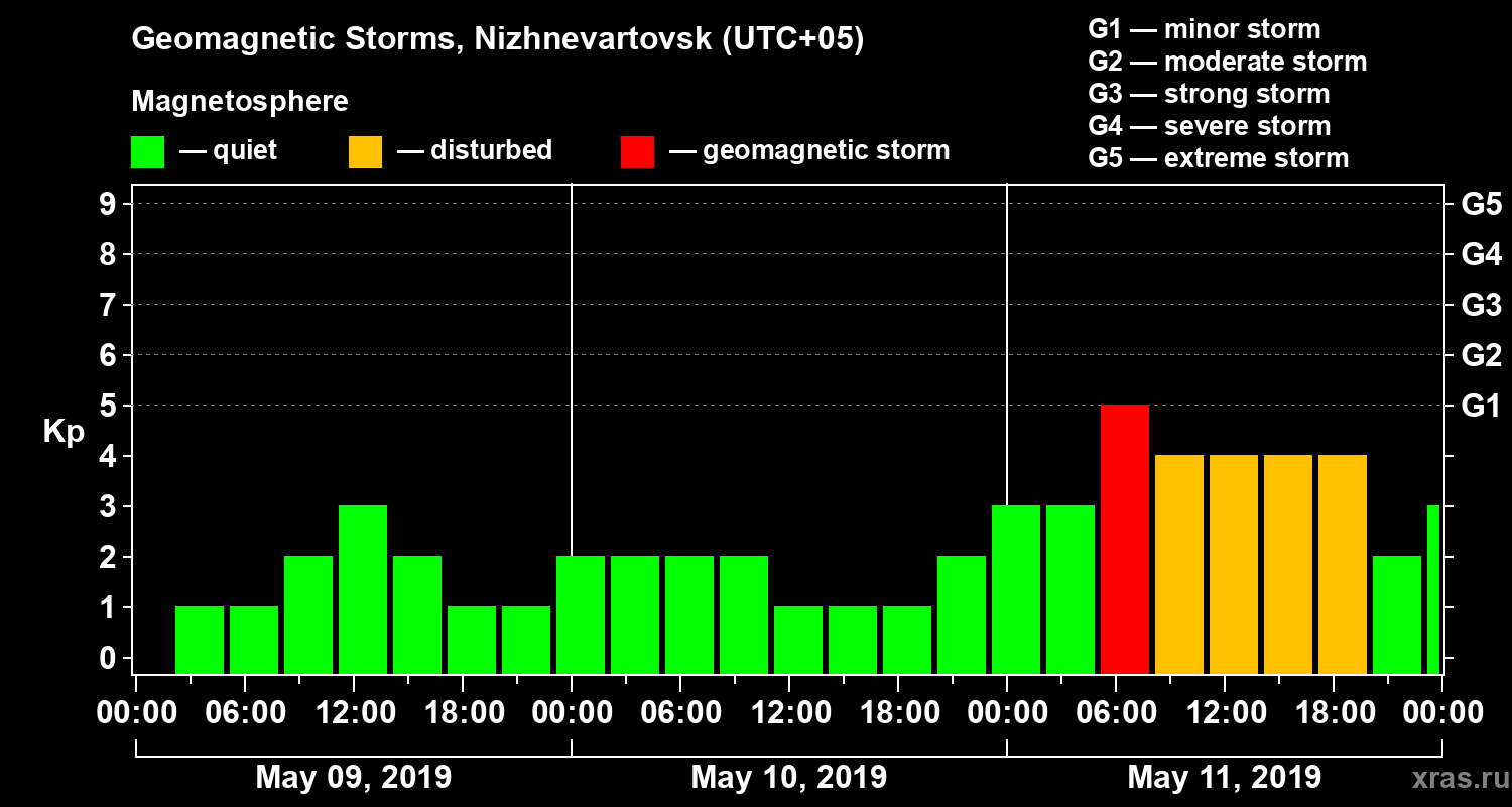 Geomagnetic storms in Nizhnevartovsk — May 11, 2019