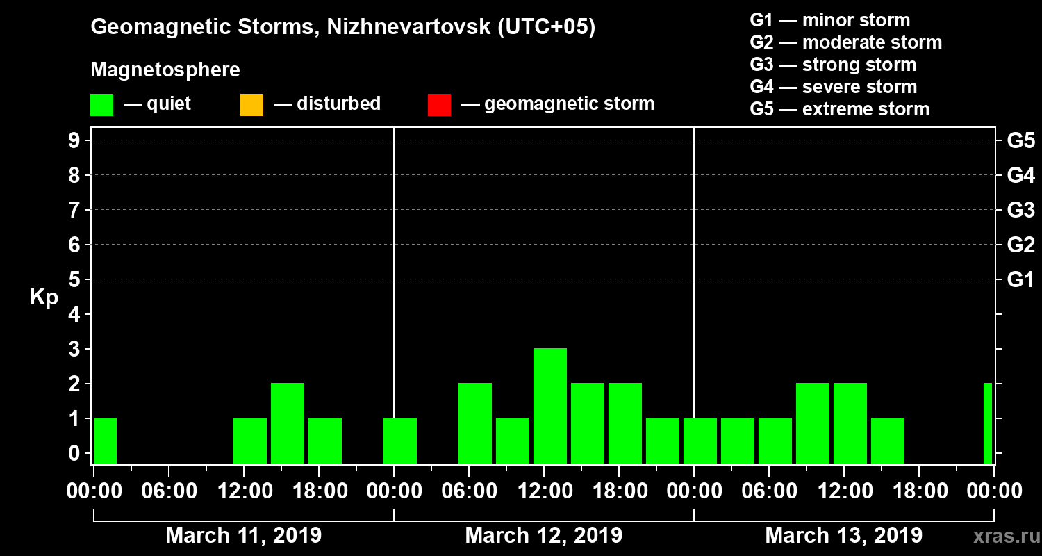 Geomagnetic storms in Nizhnevartovsk — Mar 13, 2019