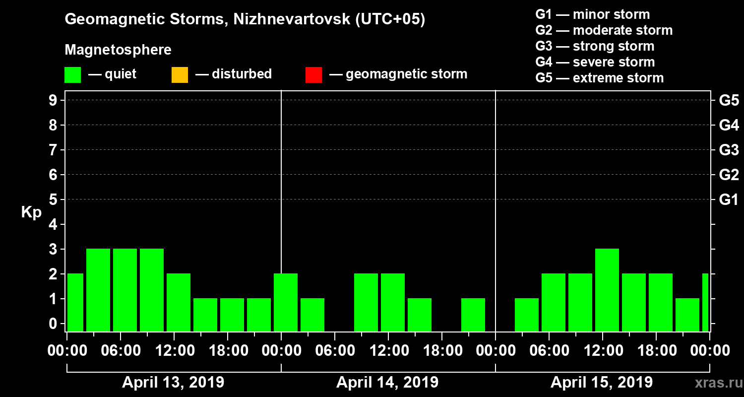 Geomagnetic storms in Nizhnevartovsk on Apr 15, 2019