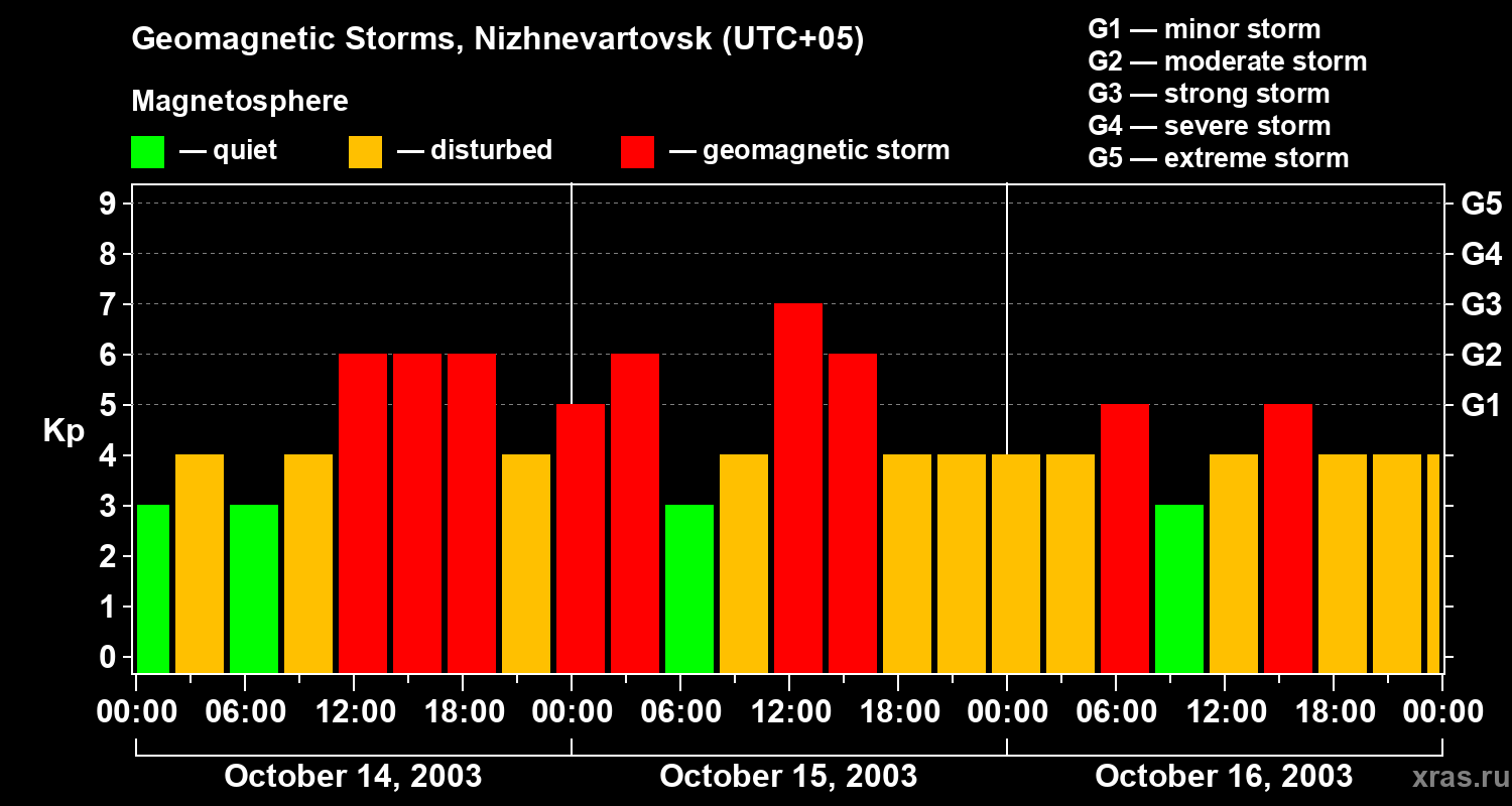 Geomagnetic storms in Nizhnevartovsk in October 2003