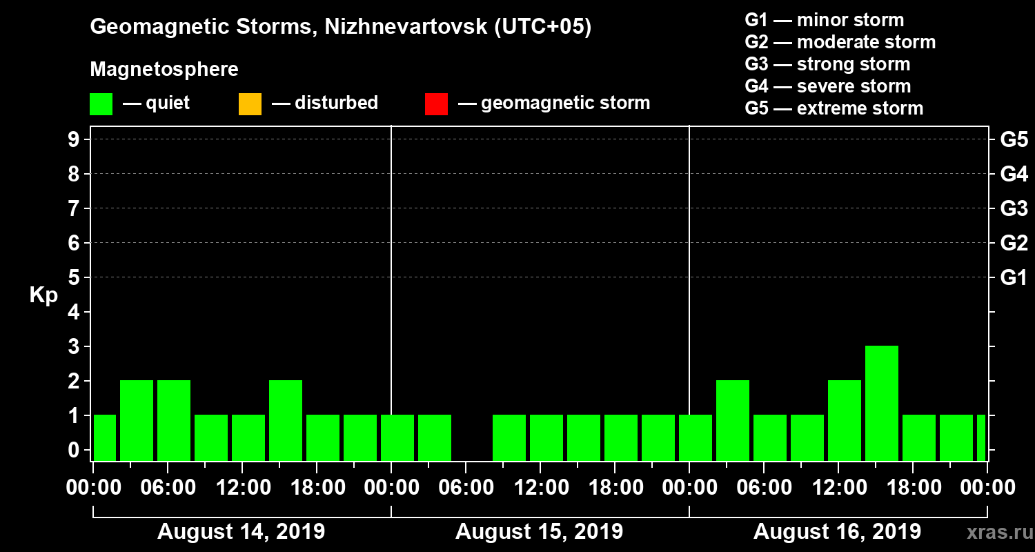 Geomagnetic storms in Nizhnevartovsk on Aug 16, 2019