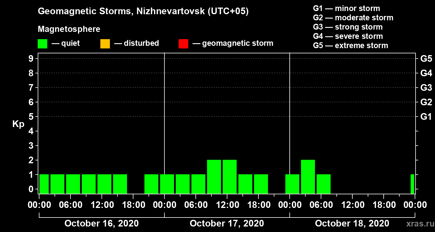 Geomagnetic storms in Nizhnevartovsk in October 2020