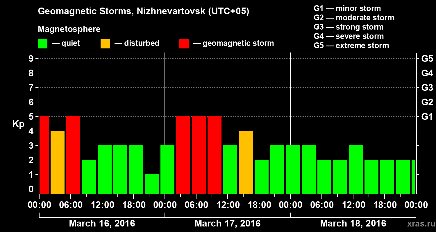Geomagnetic storms in Nizhnevartovsk in March 2016