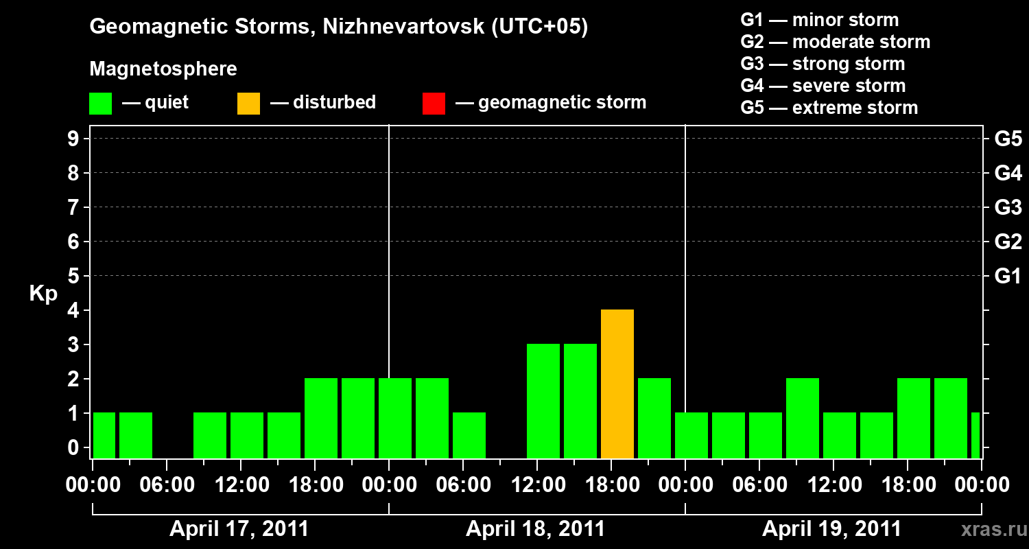 Geomagnetic storms in Nizhnevartovsk — Apr 19, 2011