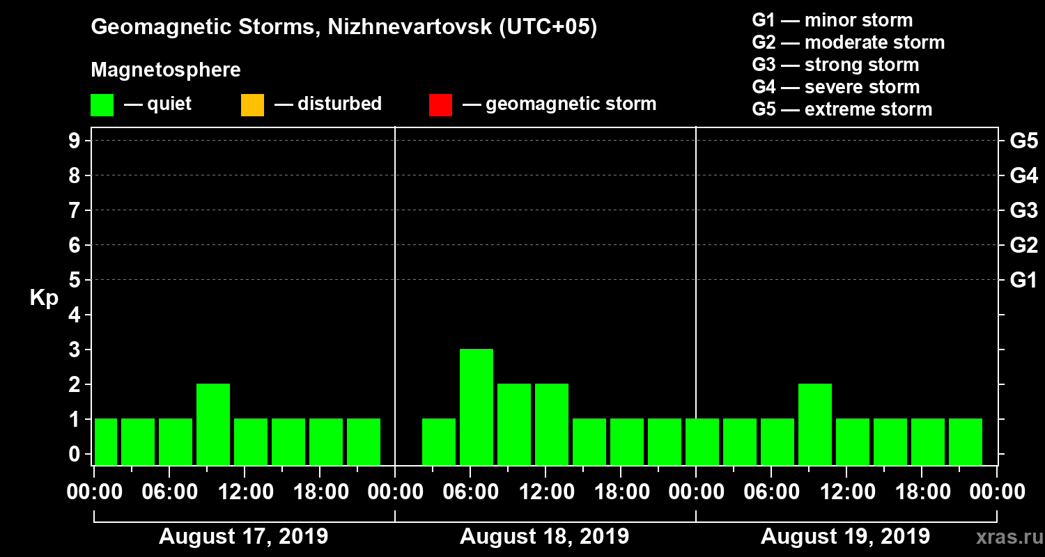 Geomagnetic storms in Nizhnevartovsk in August 2019