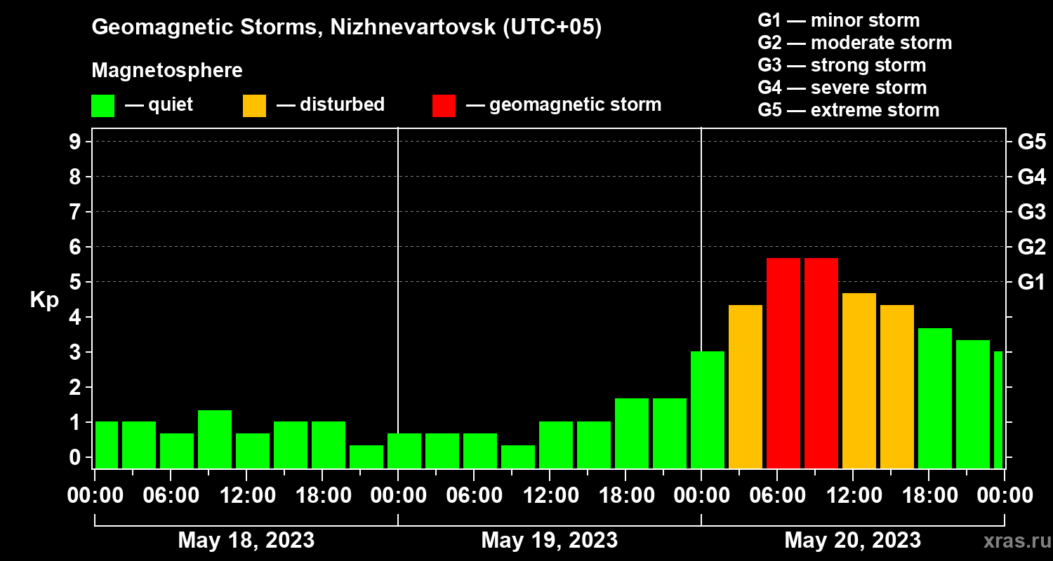 Geomagnetic storms in Nizhnevartovsk on May 20, 2023