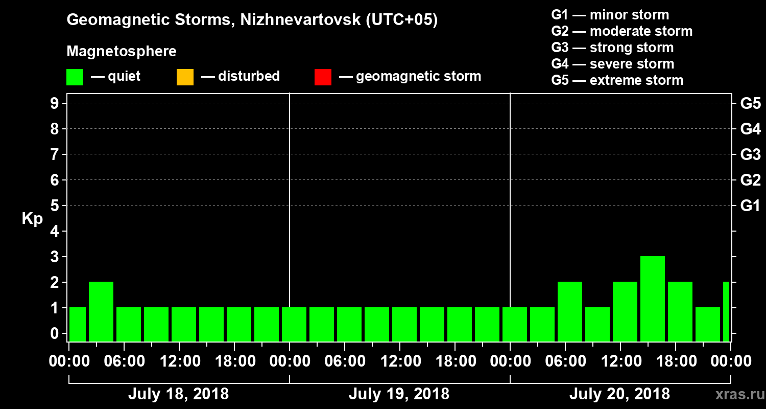 Geomagnetic storms in Nizhnevartovsk on Jul 20, 2018