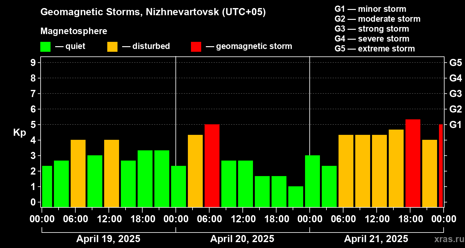 Geomagnetic storms in Nizhnevartovsk in April 2025