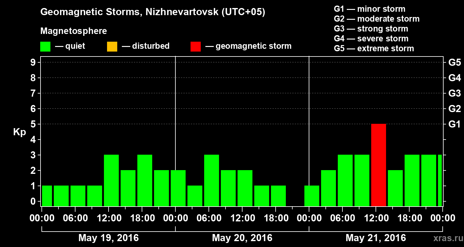 Geomagnetic storms in Nizhnevartovsk on May 21, 2016