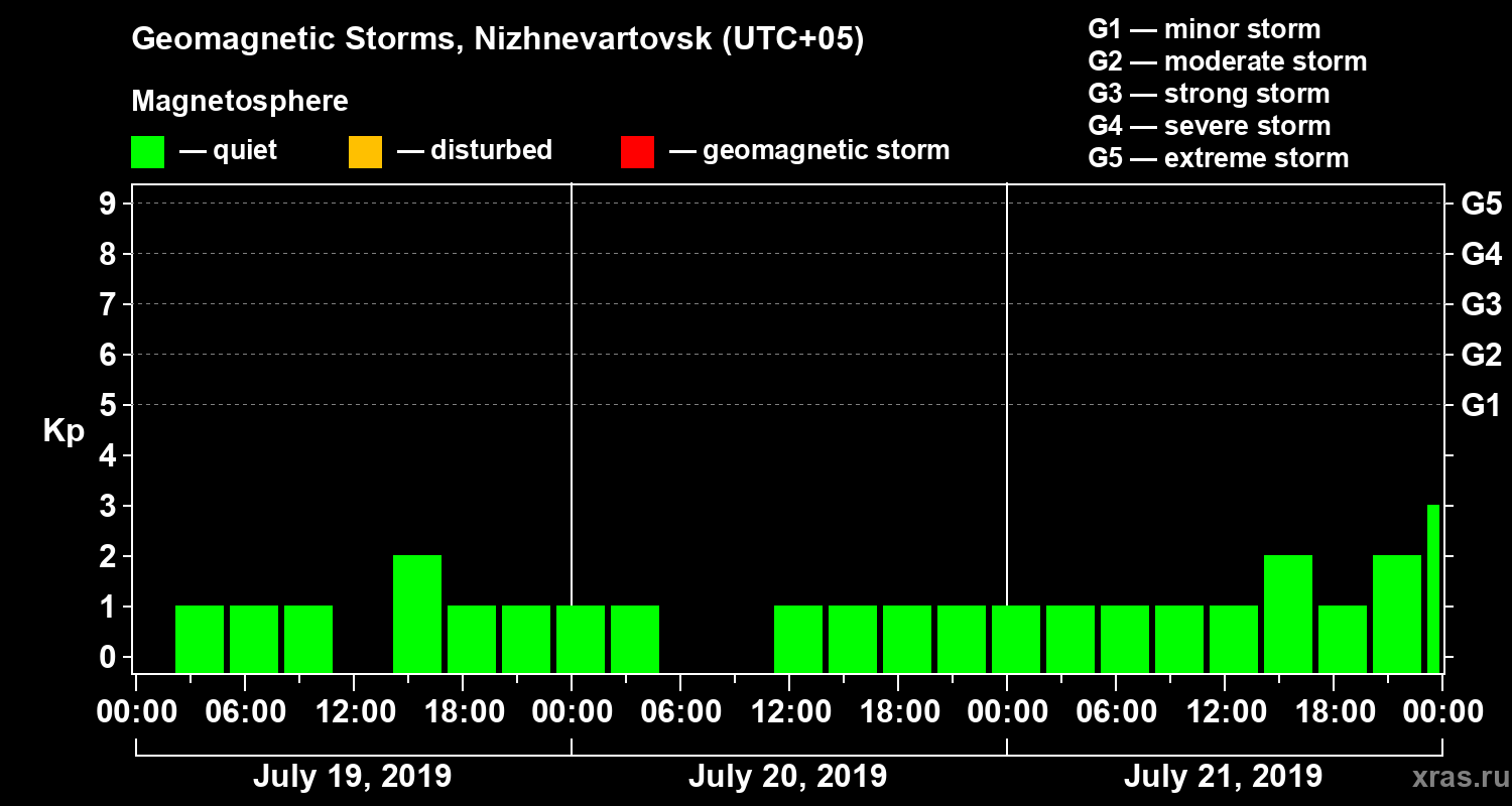 Geomagnetic storms in Nizhnevartovsk on Jul 21, 2019