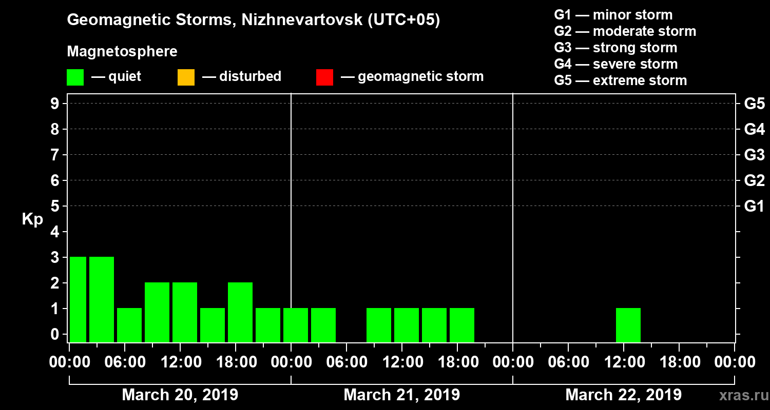 Geomagnetic storms in Nizhnevartovsk on Mar 22, 2019