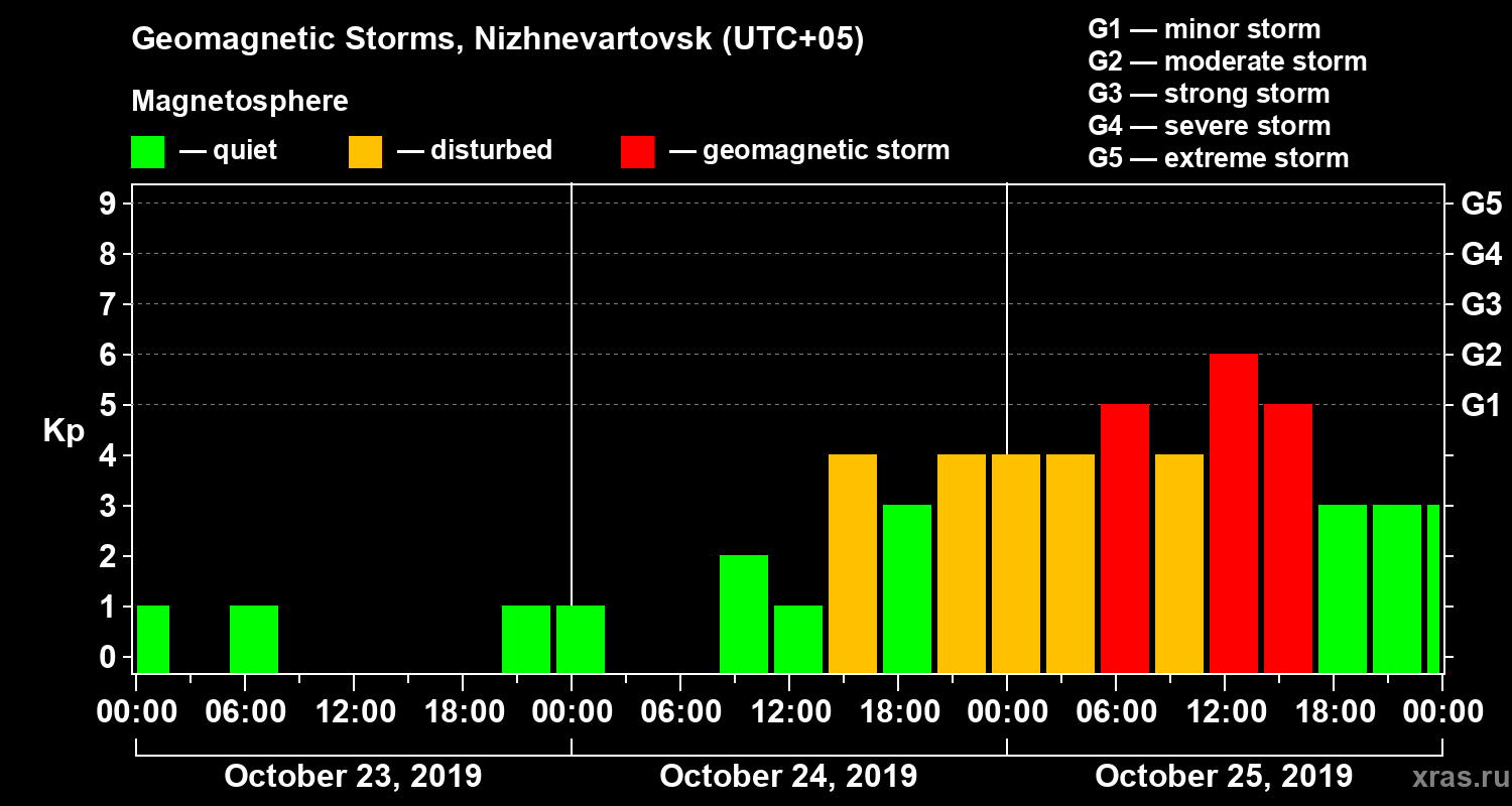 Geomagnetic storms in Nizhnevartovsk — Oct 25, 2019
