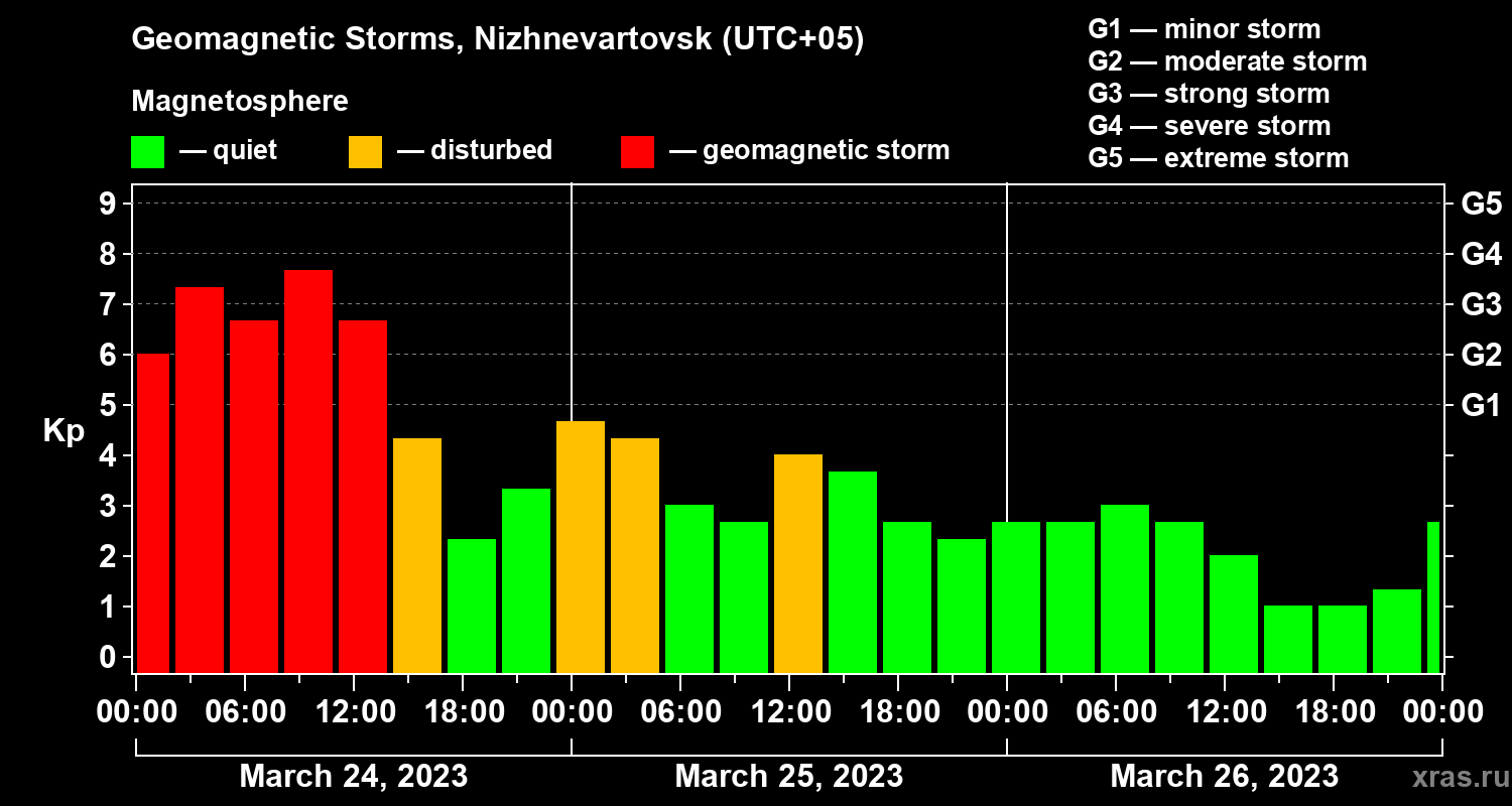 Geomagnetic storms in Nizhnevartovsk — Mar 26, 2023
