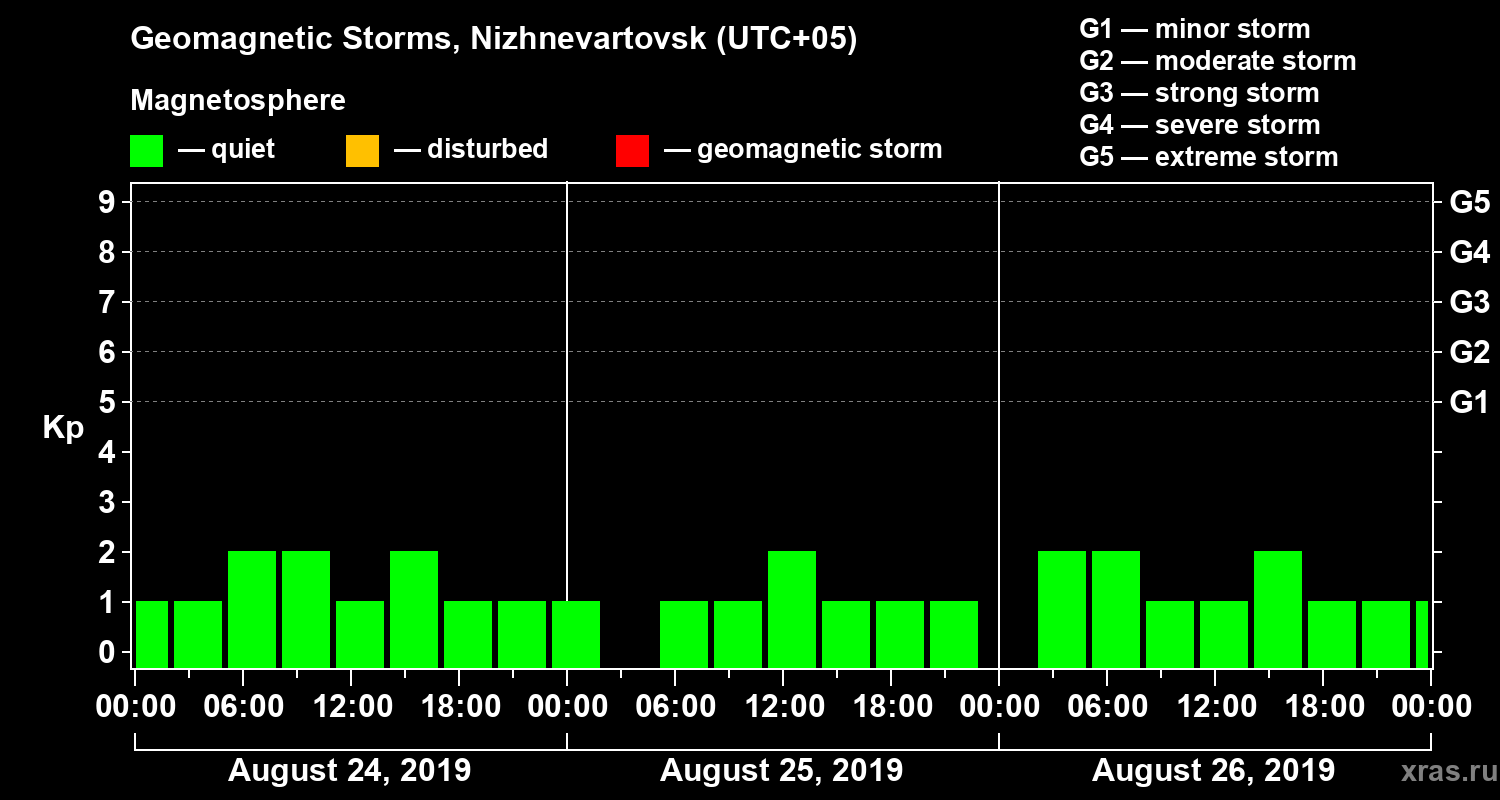Geomagnetic storms in Nizhnevartovsk on Aug 26, 2019