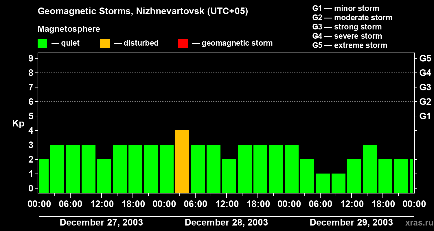 Geomagnetic storms in Nizhnevartovsk — Dec 29, 2003