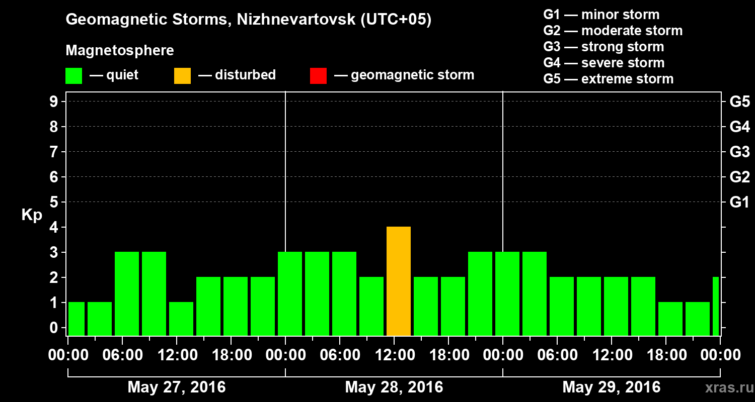 Geomagnetic storms in Nizhnevartovsk on May 29, 2016