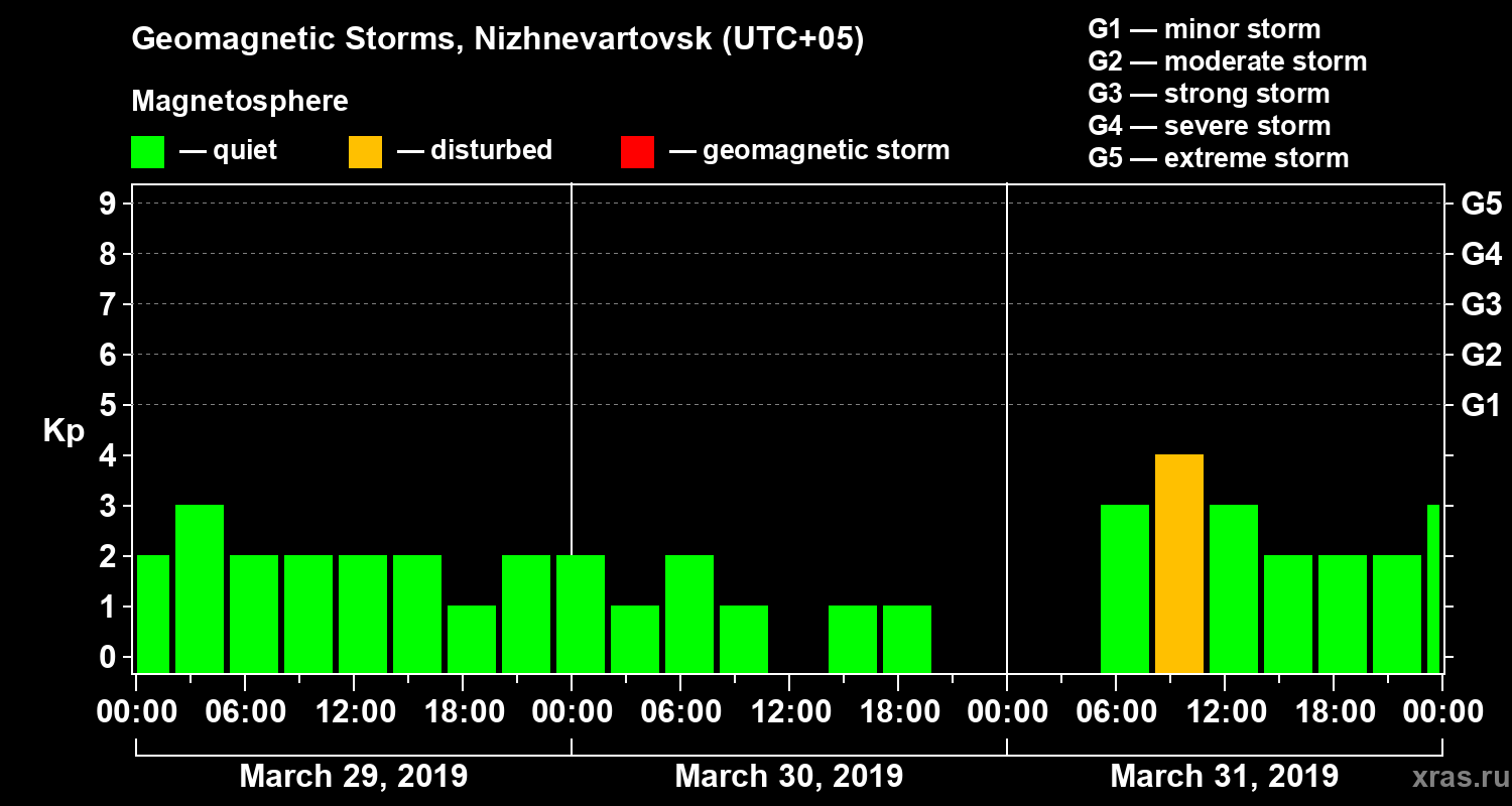 Geomagnetic storms in Nizhnevartovsk — Mar 31, 2019
