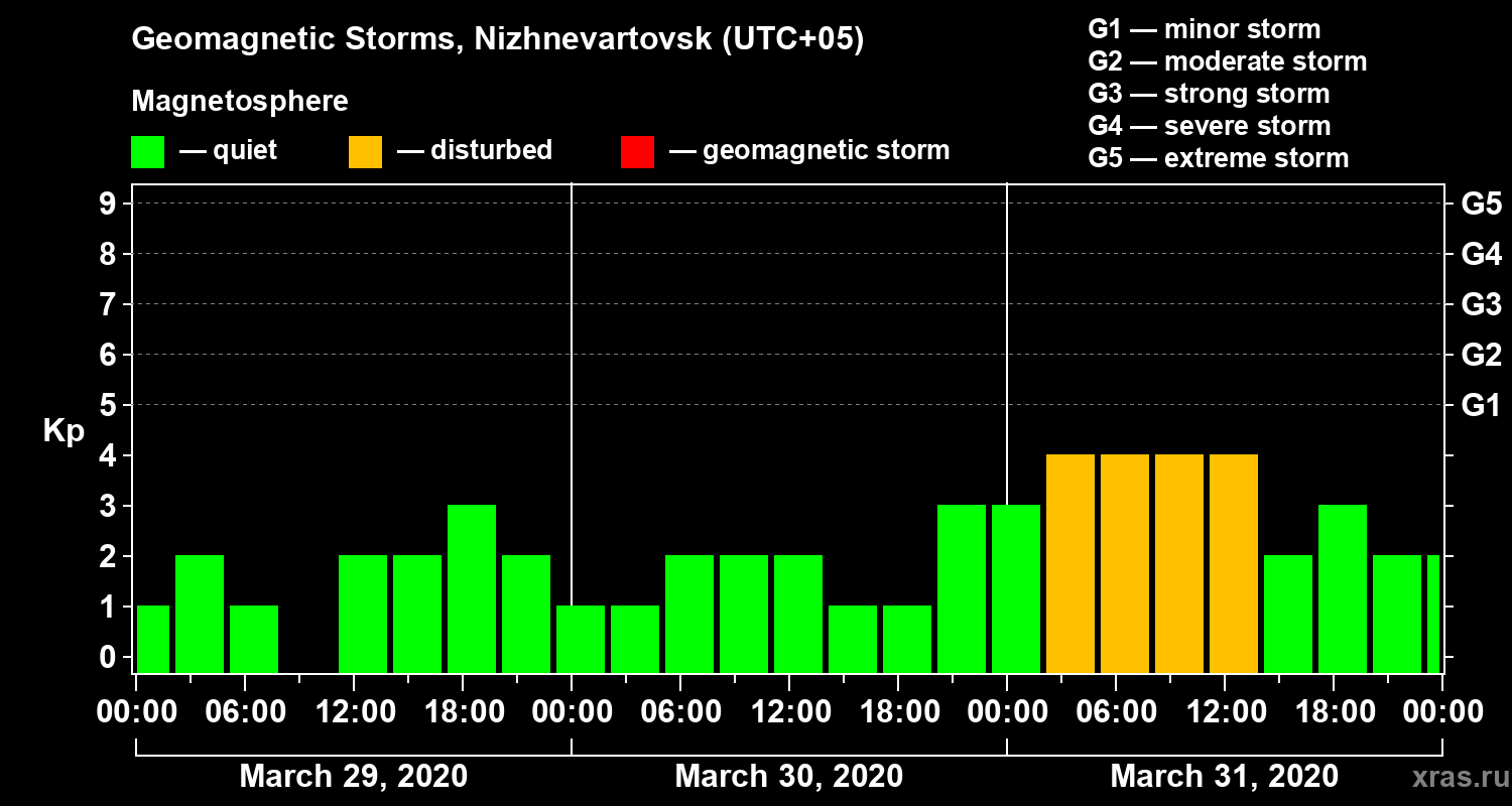 Geomagnetic storms in Nizhnevartovsk — Mar 31, 2020