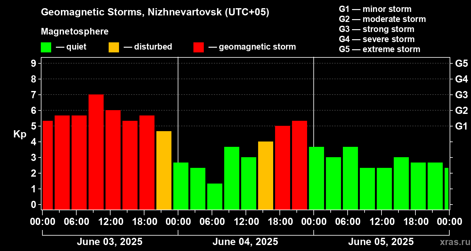 Geomagnetic storms in Nizhnevartovsk — Jun 05, 2025