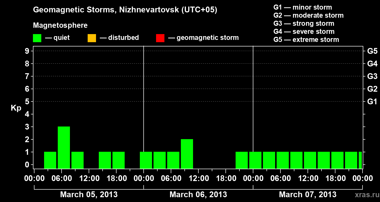 Geomagnetic storms in Nizhnevartovsk in March 2013