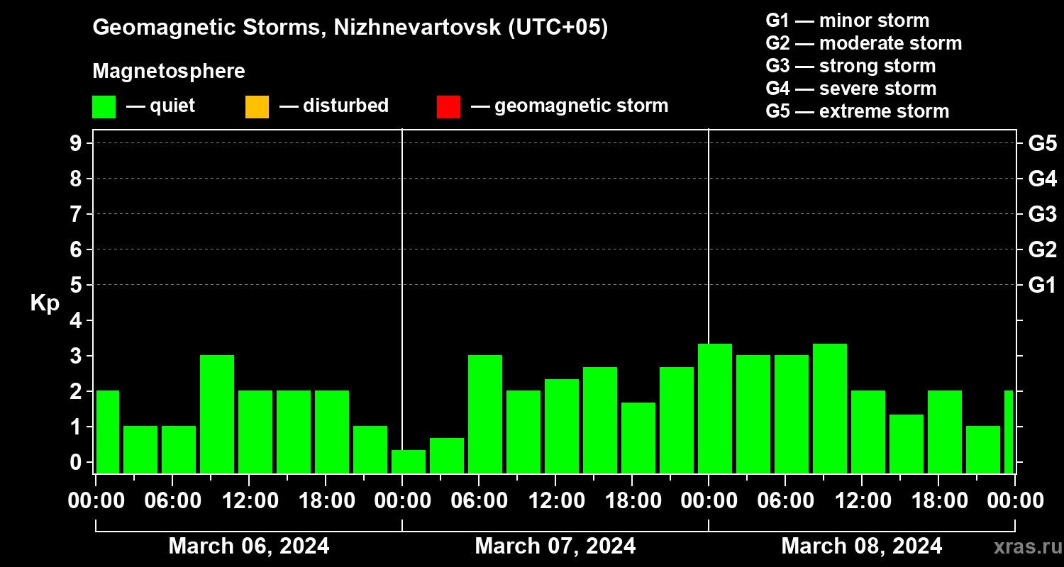 Geomagnetic storms in Nizhnevartovsk — Mar 08, 2024