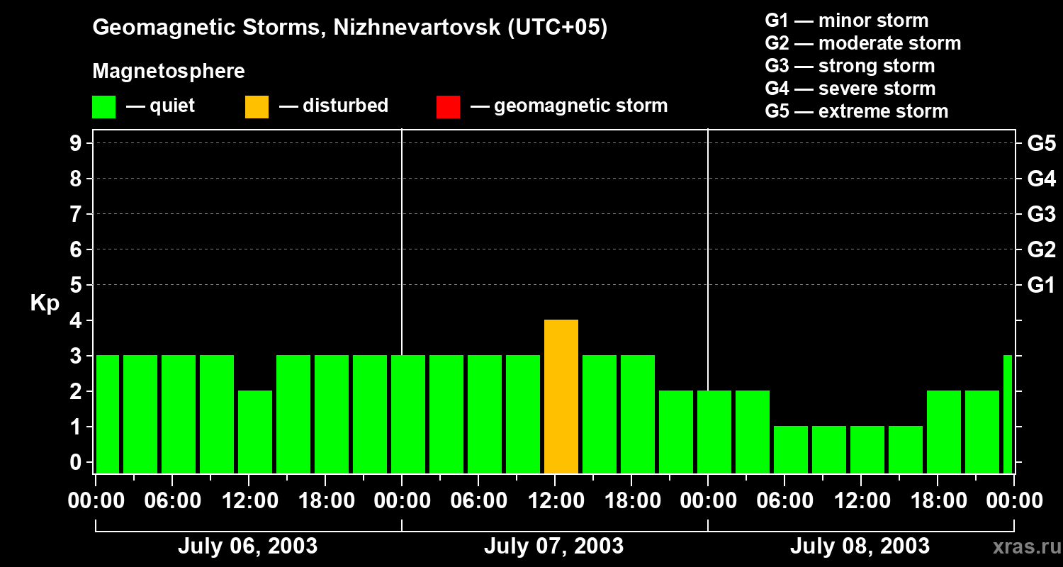 Geomagnetic storms in Nizhnevartovsk on Jul 08, 2003