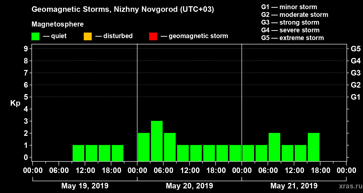 Geomagnetic storms in Nizhny Novgorod on May 21, 2019