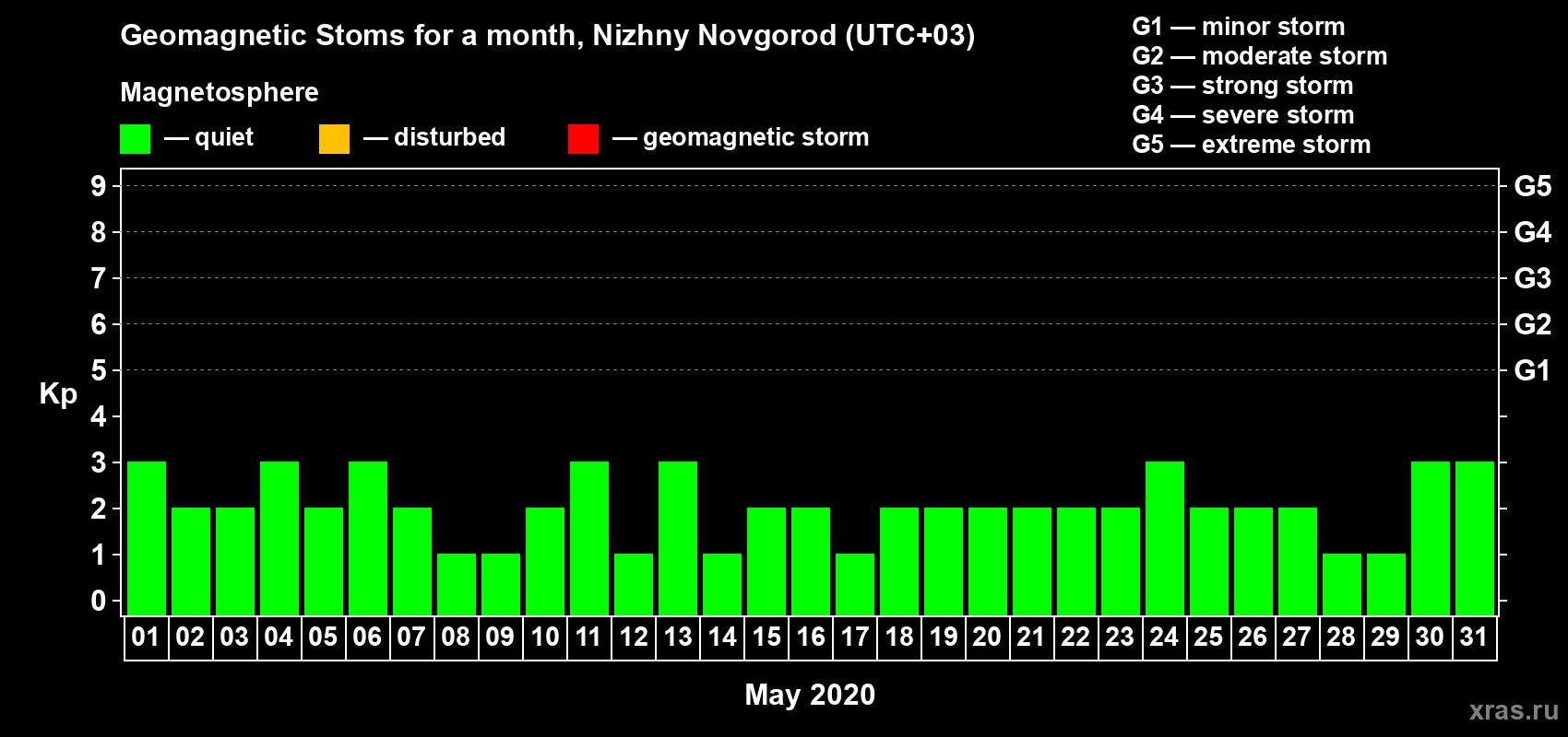 Geomagnetic storms in Nizhny Novgorod in May 2020